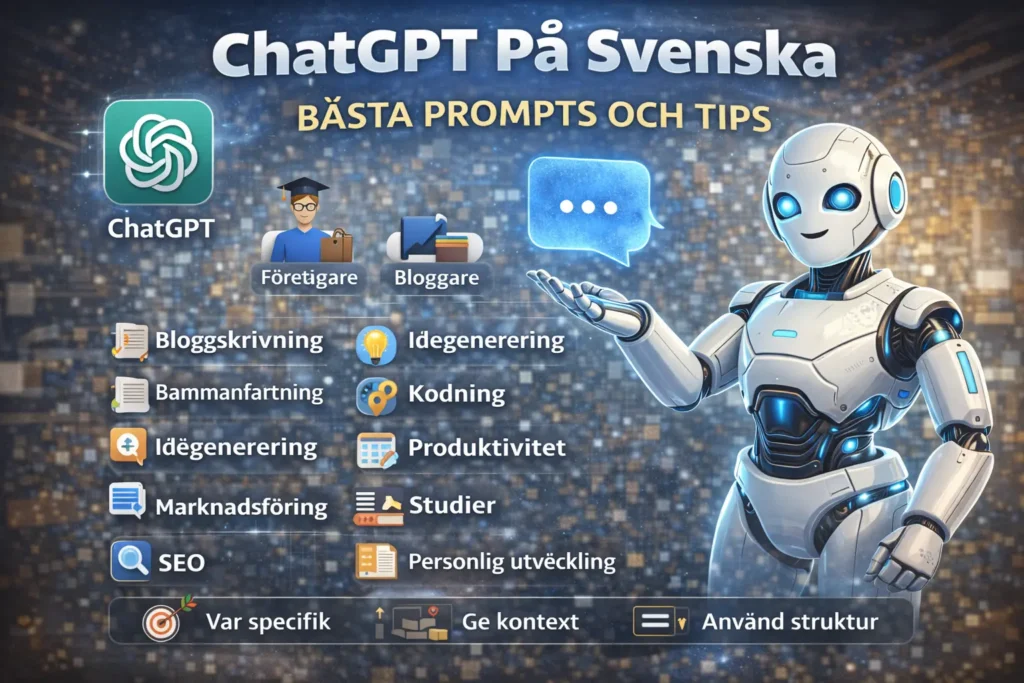 Artificiell intelligens har förändrat hur vi arbetar, skriver och kommunicerar – och ett av de mest kraftfulla verktygen idag är ChatGPT. Oavsett om du är student, bloggare eller företagare kan du använda ChatGPT för att spara tid, förbättra kvaliteten på ditt arbete och få nya idéer.