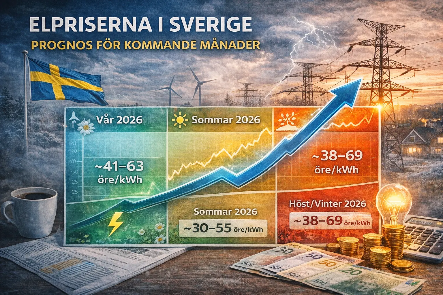 | Höst/Vinter 2026 | ~38–69 öre/kWh | Högre vinterpriser särskilt i söder |